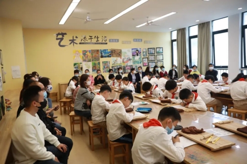 家長代表們參觀了校園,感受近幾年來翻天覆地的校園變化。隨后,家長代表們走進課堂,觀摩了由方藝璇老師和葛琤老師共同帶來的《詩陶:<浣溪沙·躍龍山>》一課。這節(jié)由美術老師和語文老師共同執(zhí)教的STREAM課程,讓家長們更加深入地了解了學校的教育特色。最后,家長們與學校班子領導一道交流探討,就雙減下的辦學、課后托管等問題進行了深入交流。
