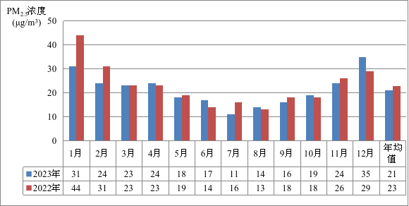 圖3-1 ?2023年與2022年PM2.5濃度同期對(duì)比圖