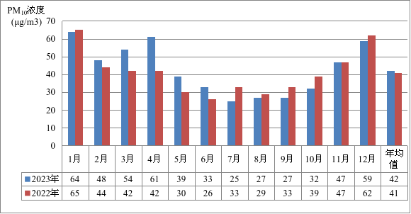 圖3-2??2023年與2022年PM10同期對(duì)比圖