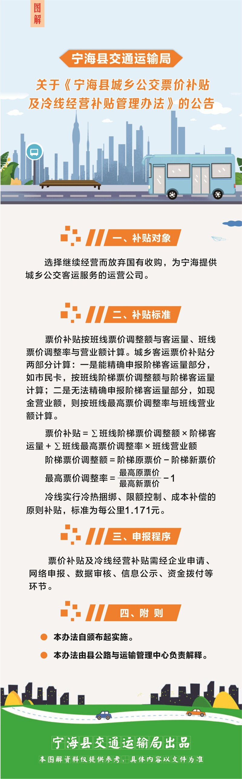【圖解】寧海縣城鄉公交票價補貼及冷線經營補貼管理辦法