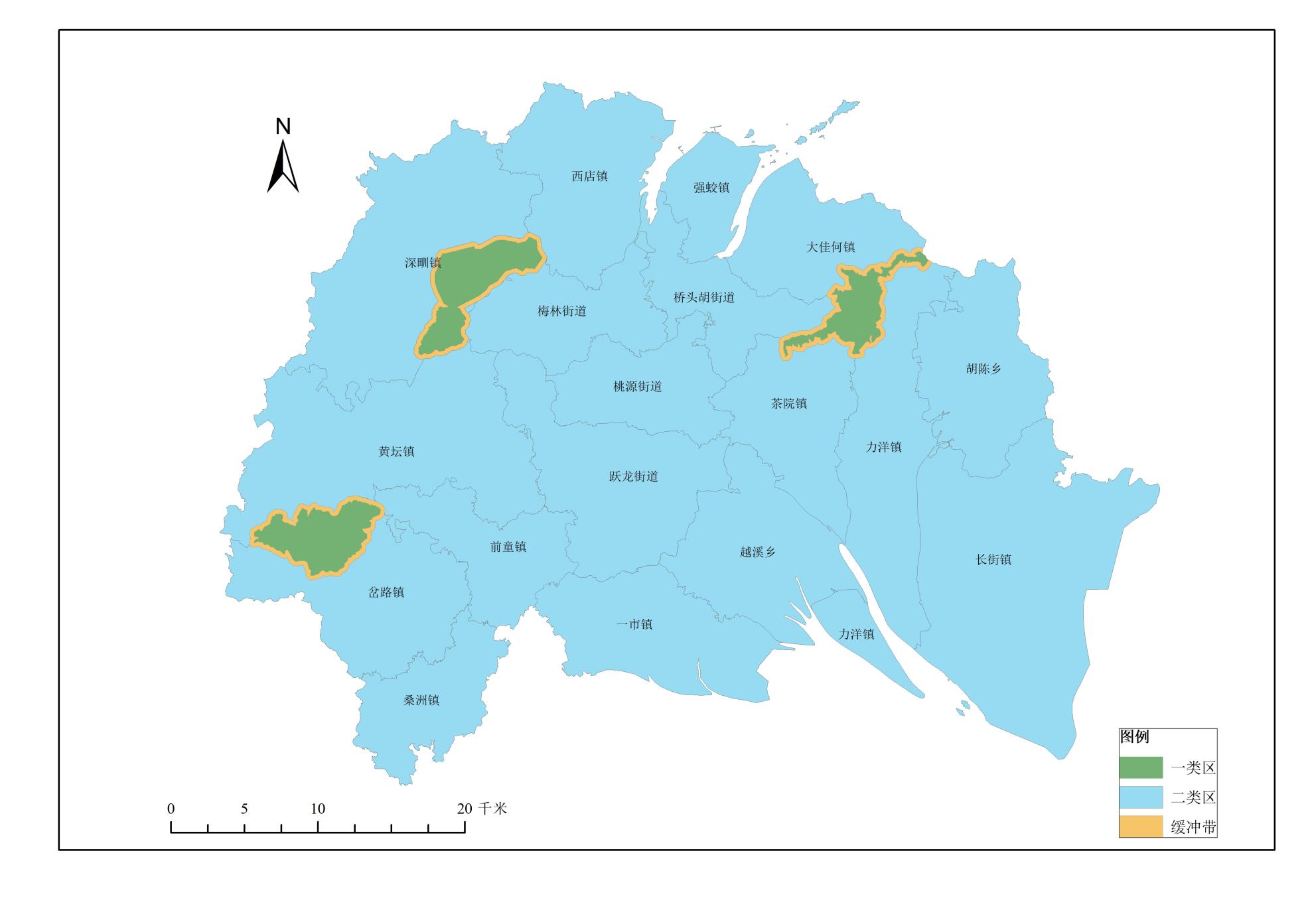 根據(jù)《環(huán)境空氣質(zhì)量功能區(qū)劃分原則與技術(shù)方法》(HJ 14-1996),一類區(qū)為自然保護區(qū)、風景名勝區(qū)和其他需要特殊保護的區(qū)域,寧海縣原一類區(qū)以原南溪-雁蒼山風景名勝區(qū)區(qū)域劃定,根據(jù)《寧波市環(huán)境空氣質(zhì)量功能區(qū)劃分方案》(甬政發(fā)〔1997〕67號),寧海縣劃定一類區(qū)為南溪-雁蒼山風景名勝區(qū),面積為126.5平方千米,一類區(qū)向外300米為緩沖區(qū),緩沖區(qū)面積為18.7平方千米,總面積145.2平方千米,一類區(qū)涉及深甽鎮(zhèn)、西店鎮(zhèn)、梅林街道、黃壇鎮(zhèn),見附件1。隨著經(jīng)濟社會發(fā)展變化,原一類區(qū)用地性質(zhì)已發(fā)生改變,根據(jù)2024年11月獲批復(fù)的《寧海縣國土空間總體規(guī)劃(2021-2035年)》,寧海縣目前已無風景名勝區(qū),原南溪-雁蒼山風景名勝區(qū)已取消。根據(jù)2023年9月寧海縣發(fā)布的《寧海森林溫泉省級旅游度假區(qū)總體規(guī)劃(2022-2035年)》,寧海森林溫泉省級旅游度假區(qū)規(guī)劃面積19.58平方千米,與原南溪-雁蒼山風景名勝區(qū)區(qū)域面積相比大幅減小,且并非劃定為風景名勝區(qū)。因此,因?qū)幒?h目前無風景名勝區(qū),根據(jù)一類區(qū)劃定方法,寧海縣原一類區(qū)應(yīng)調(diào)整為二類區(qū)。
