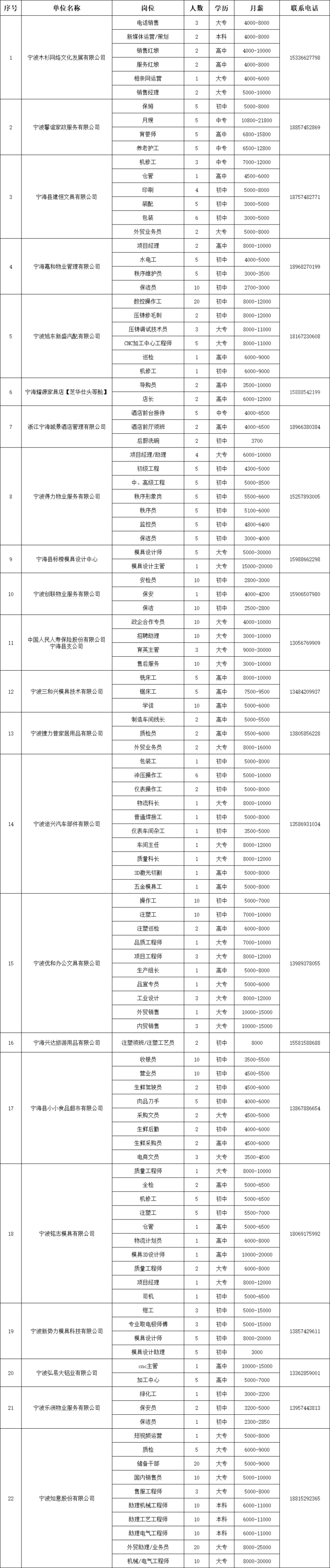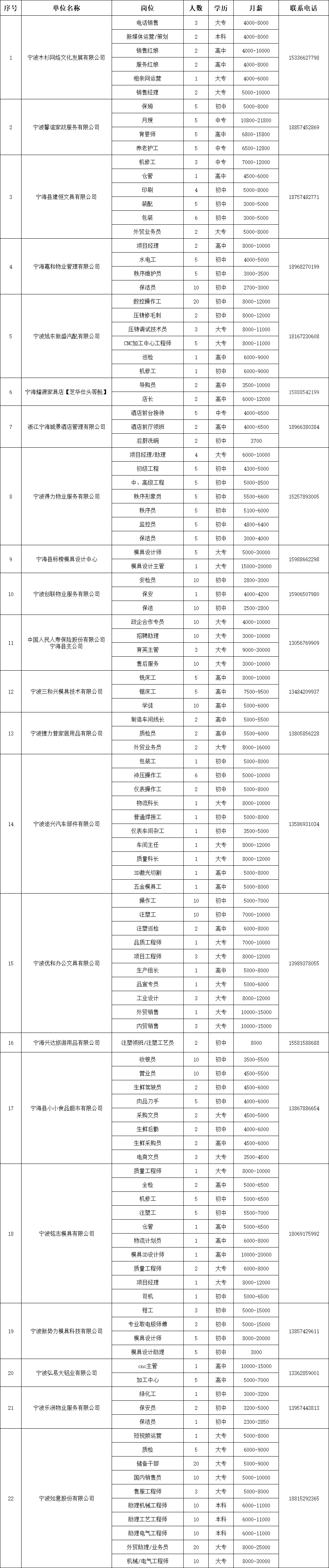 本招聘信息由寧海縣就業與失業保險管理服務中心組織發布,部分信息以當日市場發布的即時更新的信息為準